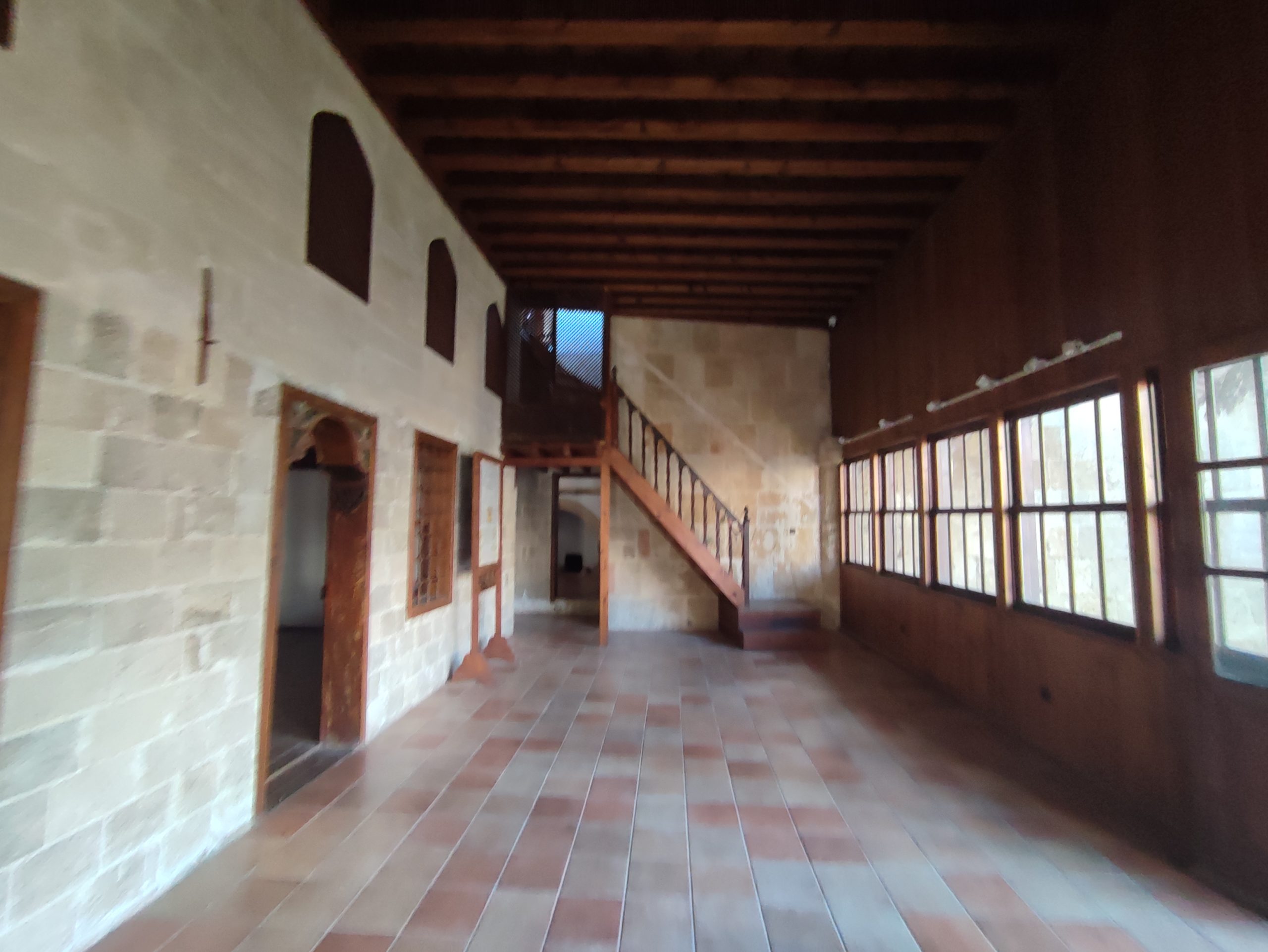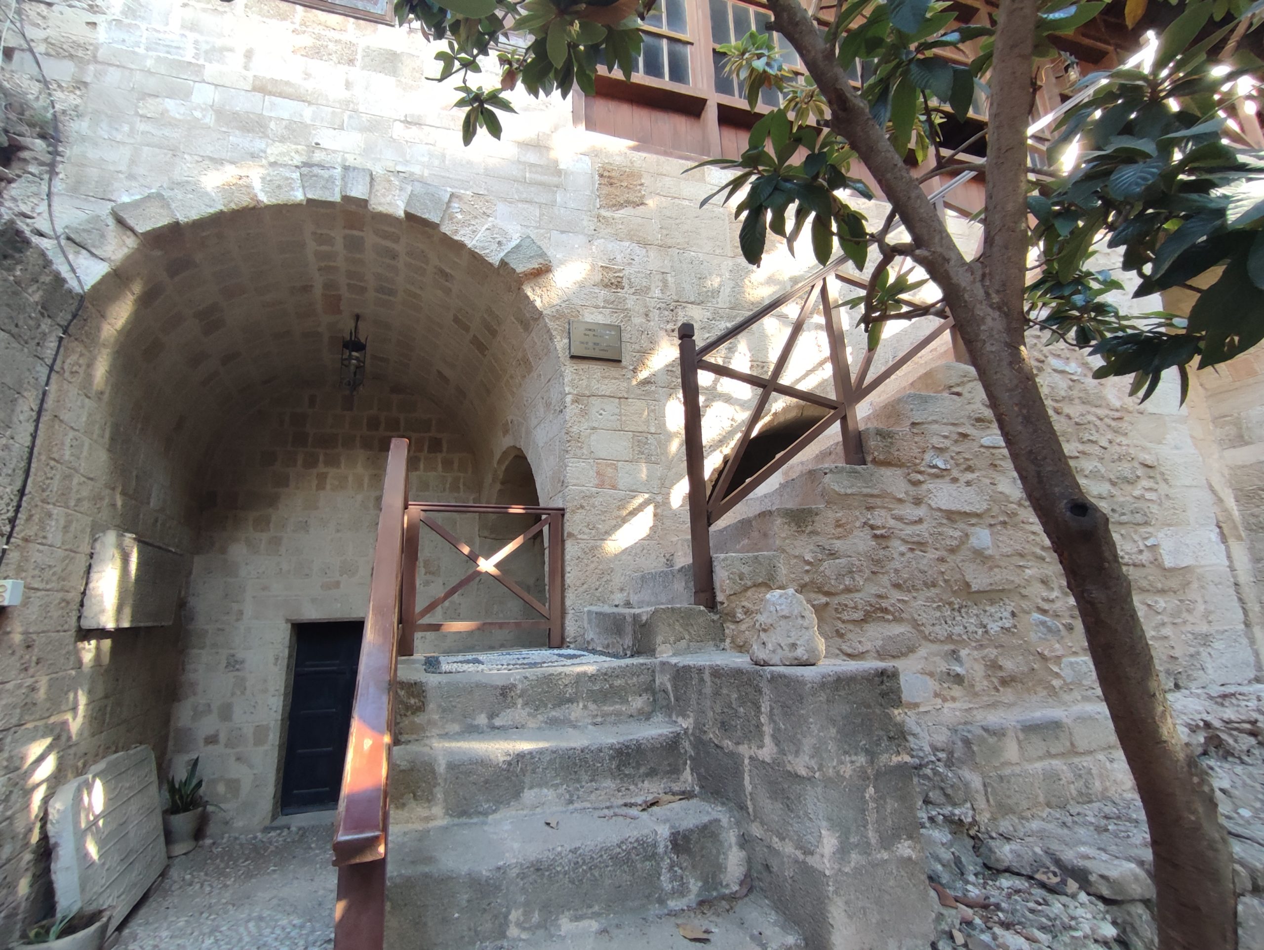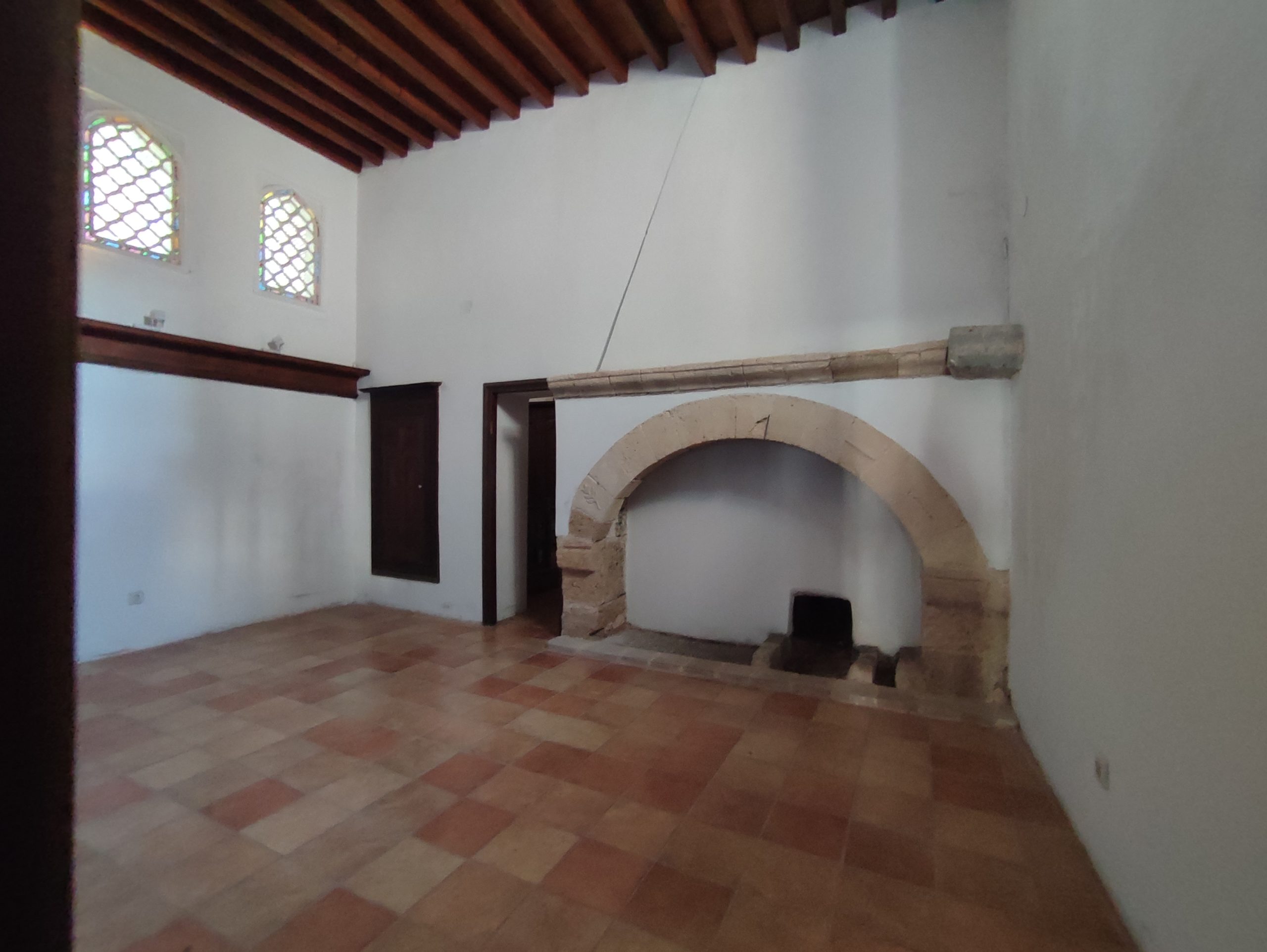 Pierwsze prace rekonstrukcyjne budowli miały miejsce po trzęsieniu ziemi w 1480 roku, jednak pierwotne zastosowanie budynku nie jest do końca znane. Wielkość, położenie i konstrukcja budynku oraz zachowane ramy trójdzielnego domu nad półkolistym portykiem w stylu katalońskim z pierwszej fazy budowy świadczą o tym, że był on przeznaczony do użytku publicznego, w związku z rozległą działalnością szpitalną rycerzy św. Jana.