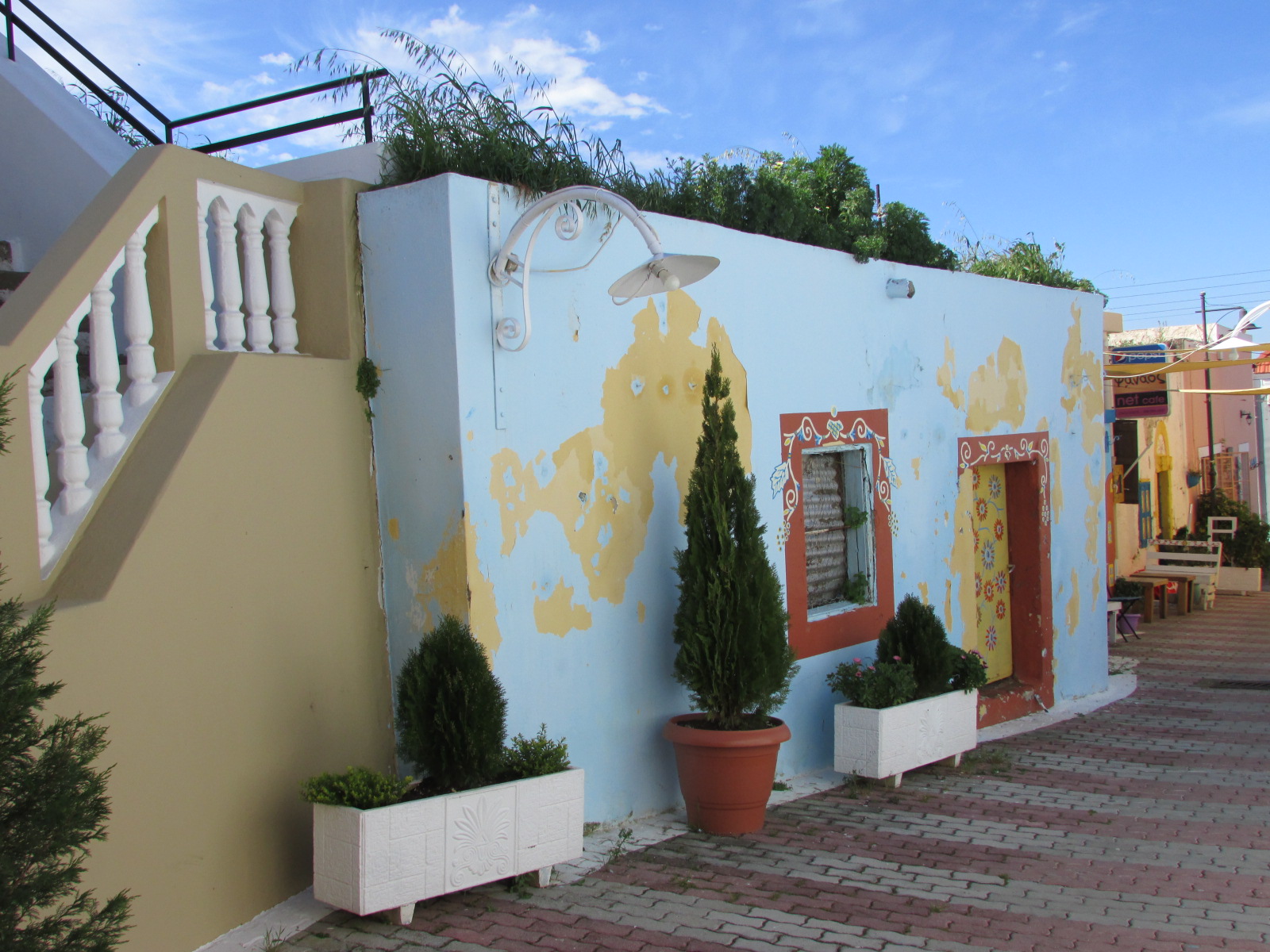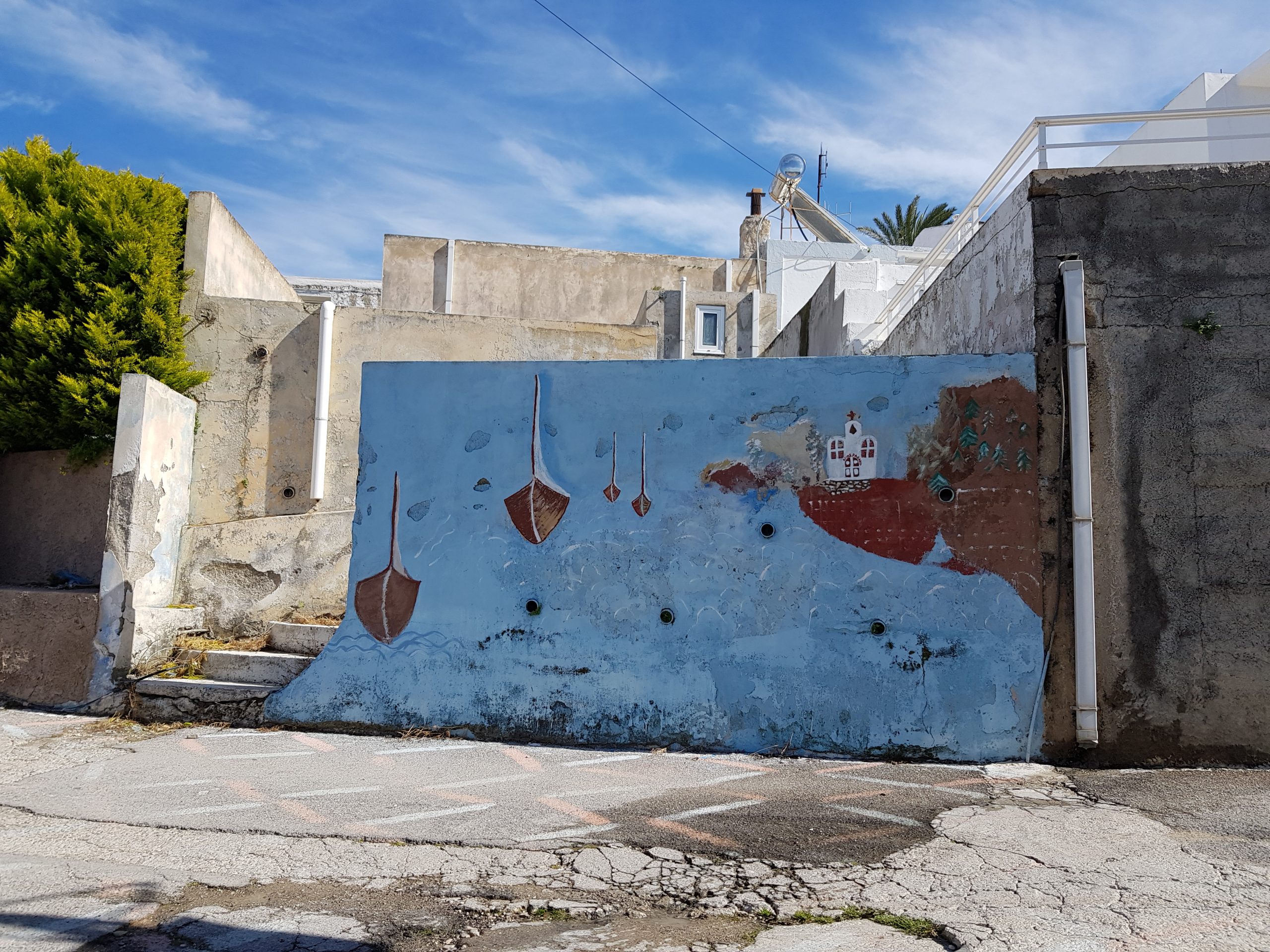 Na plaży znajduje się też hotel Delfini i hotelowa tawerna oferująca gościom lokalne tradycyjne potrawy przyrządzane przez matkę rodziny właściciela. Domowe jedzenie ze świeżymi warzywami, rybami, które codziennie przybywają do pobliskiego portu i winem ze słynnych winnic w okolicy wioski. Dlaczego o tym piszę? Dlatego, że Loukas Nikolitsis, pomysłodawca zmiany oblicza wioski, należy do rodziny prowadzącej ten hotelik.