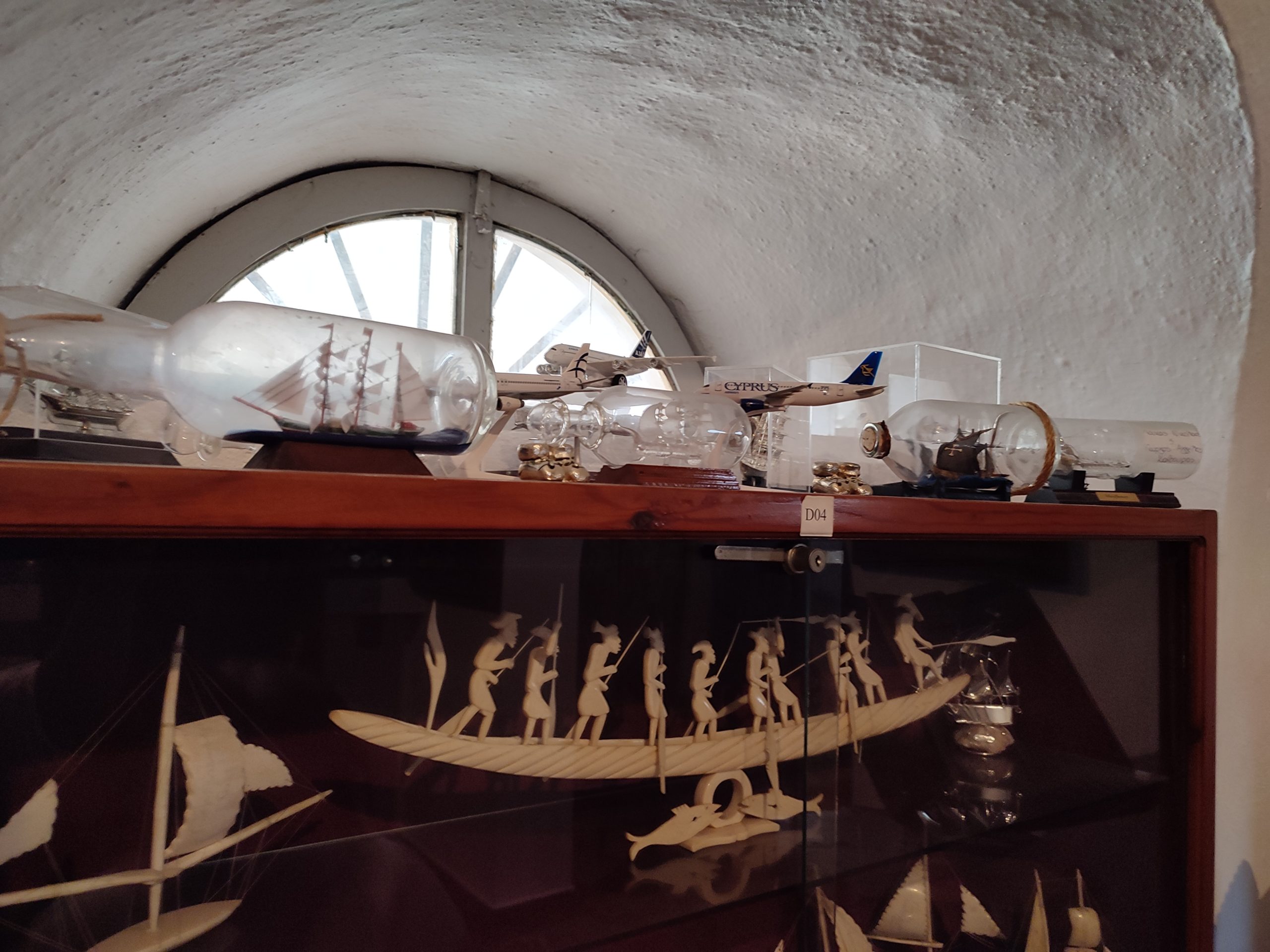 Po wejściu do muzeum, w pierwszej Sali po prawej stronie znajdują się łodzie i butelki, które wierni z całego świata wysyłają drogą morską do ukochanego Michała Archanioła. Te ofiary i pełne czci błagania do Archanioła wyławiane są następnie z zatoki Panormitis i znajdują swoje miejsce w sali muzealnej. W Sali tej znajdziemy również zabalsamowane płazy, krokodyle itp. które zostały ofiarowane klasztorowi w ubiegłym wieku przez diasporę z Afryki.