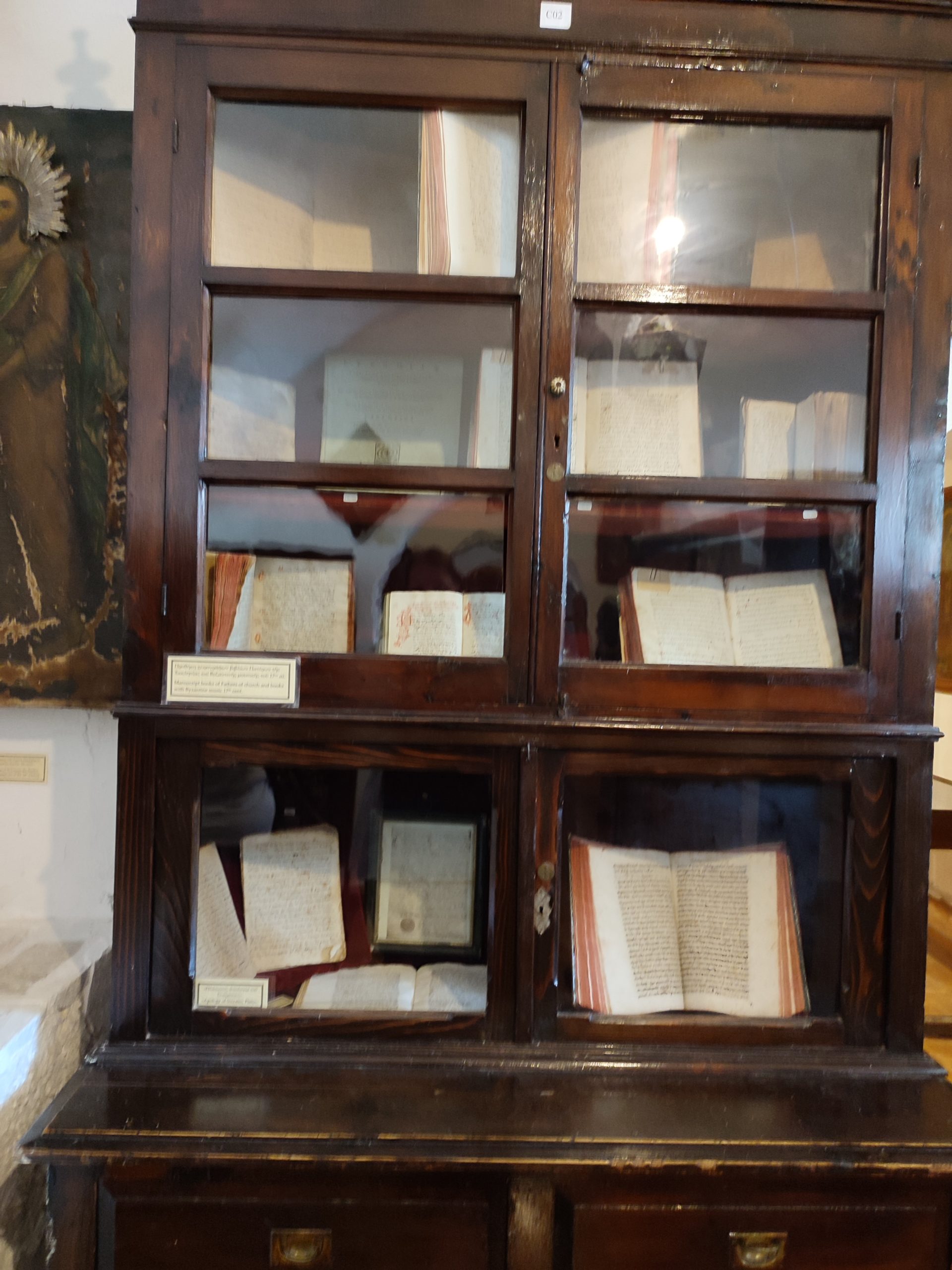 Wielką wartość historyczną ma również odręcznie pisany list z 1830 r., z podpisem pierwszego gubernatora współczesnej Grecji, Ioannou Kapodistriasa i adresowany do mnichów z Panormitis. W tej samej gablocie znajduje się oprawiony w skórę Rejestr gminy Symi z 1712 roku. Rejestrowano w nim populację wyspy z podziałem na rodziny i parafie. Ciekawym eksponatem jest księga rachunkowa, w której szczegółowo przedstawiono wydatki poniesione przez Klasztor na utrzymanie Szkoły Powszechnej w latach 1799-1820.
