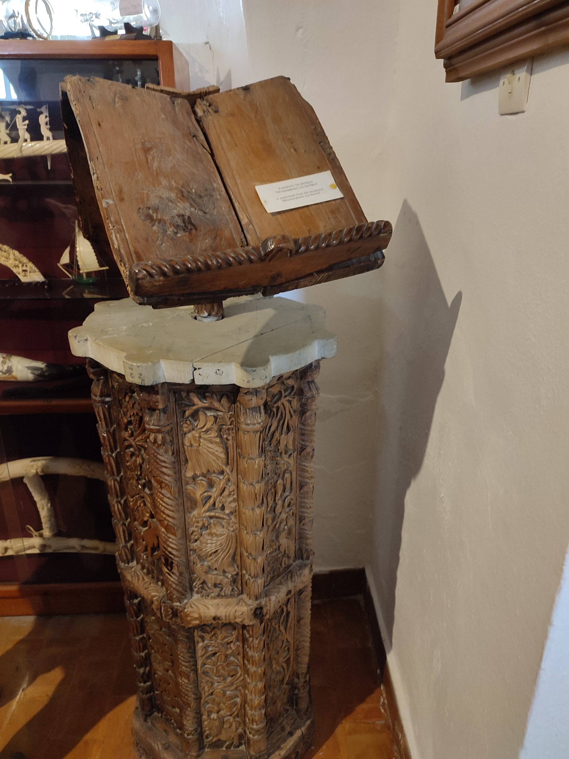 Wokół znajdują się przedmioty, będące rzadkimi darami od wierzących np. tubylców z Afryki. Do takich należą m.in. długie kły słoniowe, bogato rzeźbione, ręcznie robione autentyczne chińskie talerze, jako prezenty od żeglarzy i wiele mieczy, z których najstarsze pochodzą z bitwy z 1821 r.