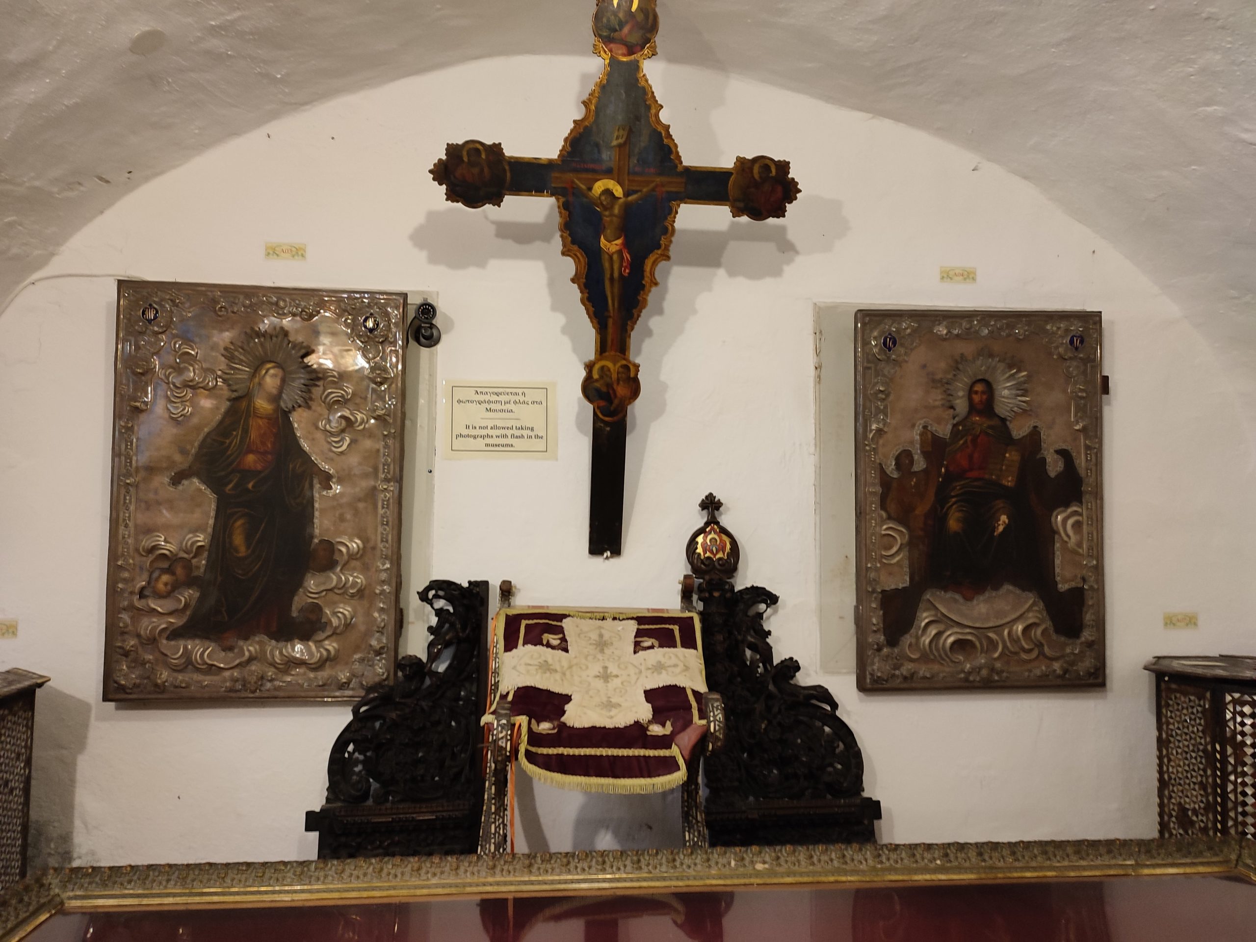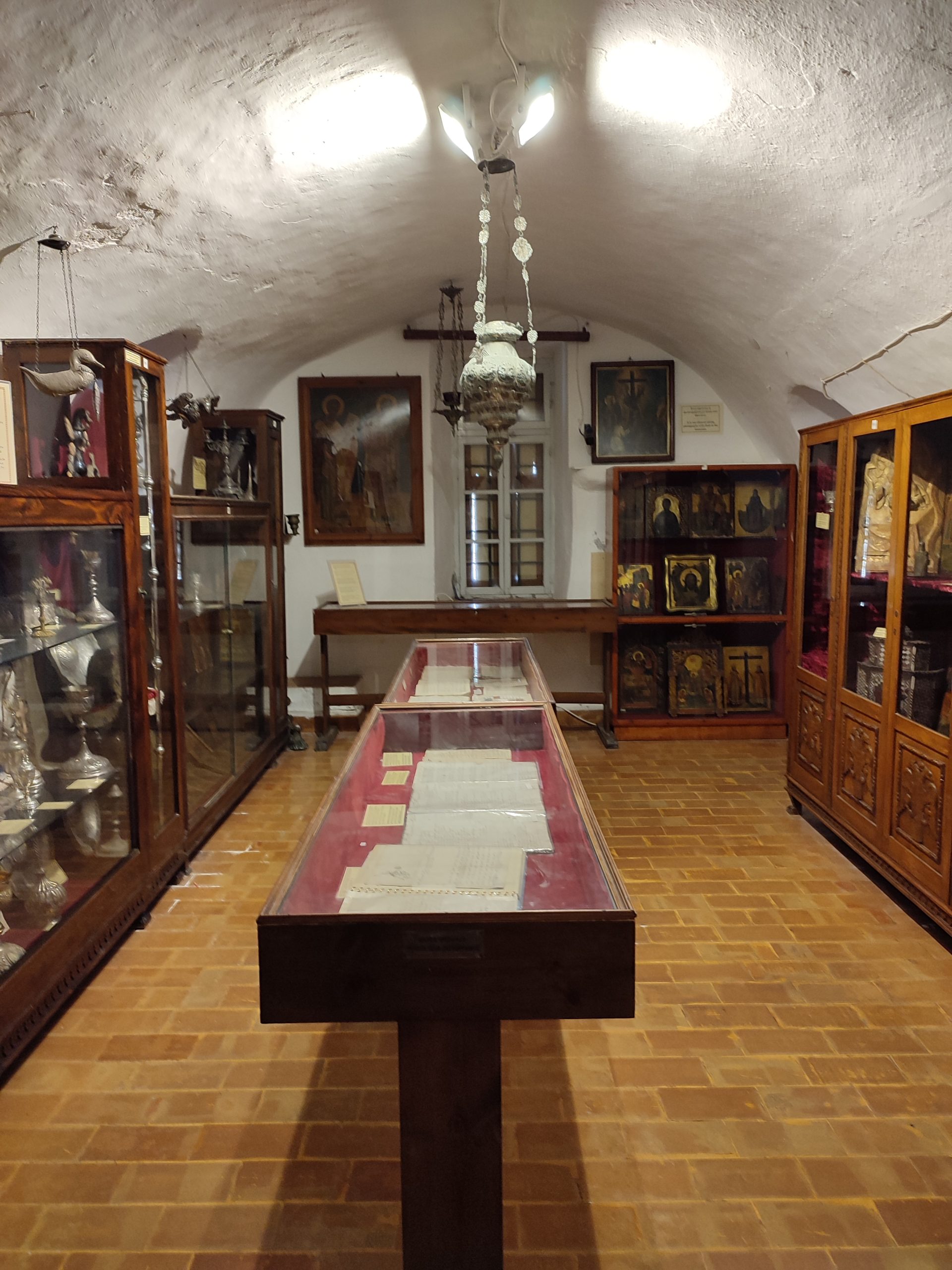 Muzeum Kościelne Klasztoru zostało założone w 1987 roku przez błogosławionego Opata Archimandrytę Gabriela Margaritisa. Muzeum postawiło sobie za główny cel zachowanie posiadanych zabytków, które są teraz dostępne dla pielgrzymów i zwiedzających. Cena wejścia do muzeum to zaledwie 1,50€ (wrzesień 2022), jednak niektórym wydaje się to za dużo i sama widziałam, że rezygnowali z jego odwiedzenia. Całkiem niesłusznie. W kilku salach muzealnych zgromadzono wiele cennych pamiątek, które warto zobaczyć na własne oczy. Poniżej przedstawię kilka z nich, ale nie za dużo, tak by pozostawić niedosyt i zachęcić was do odwiedzenia tego miejsca.