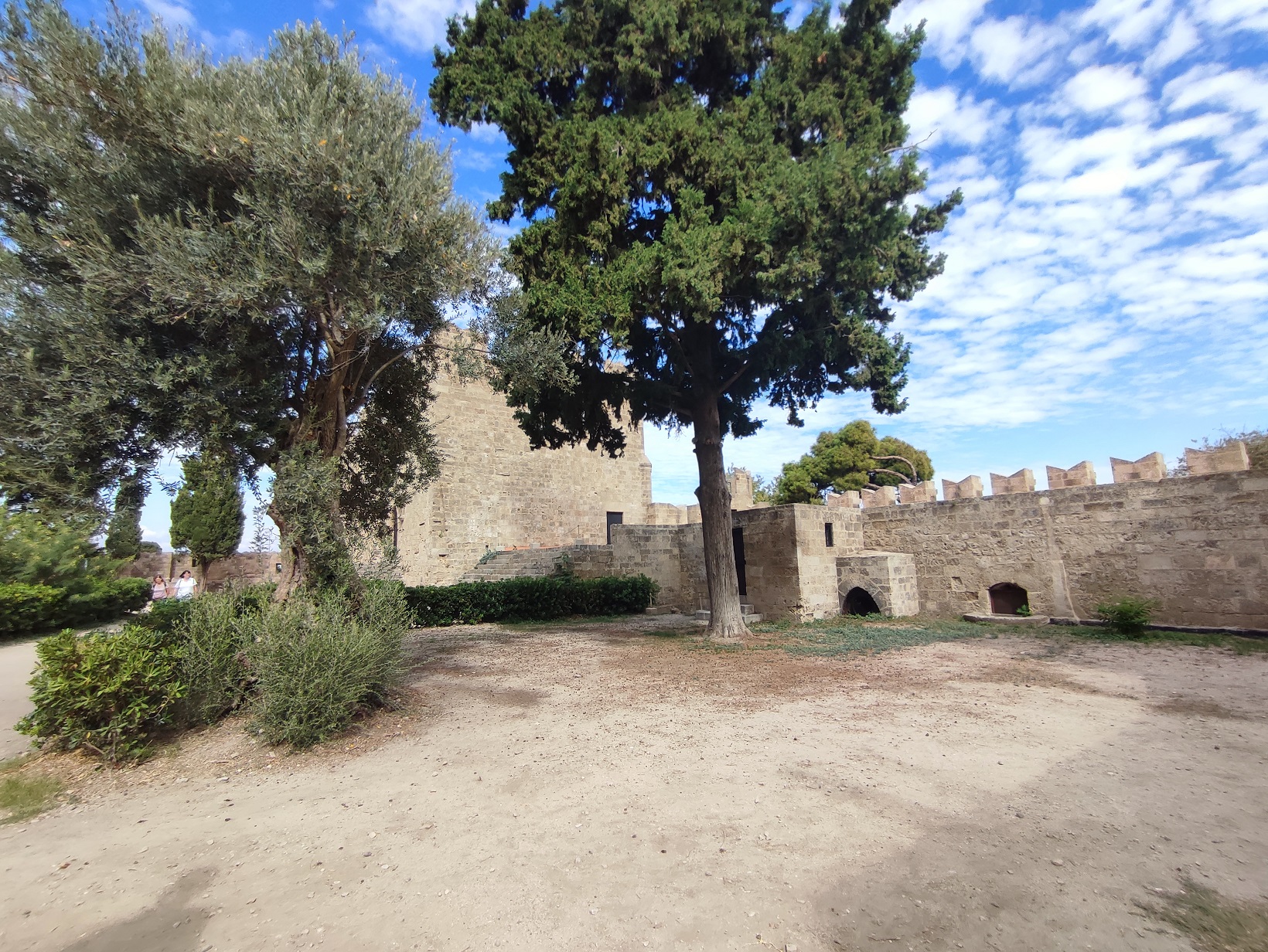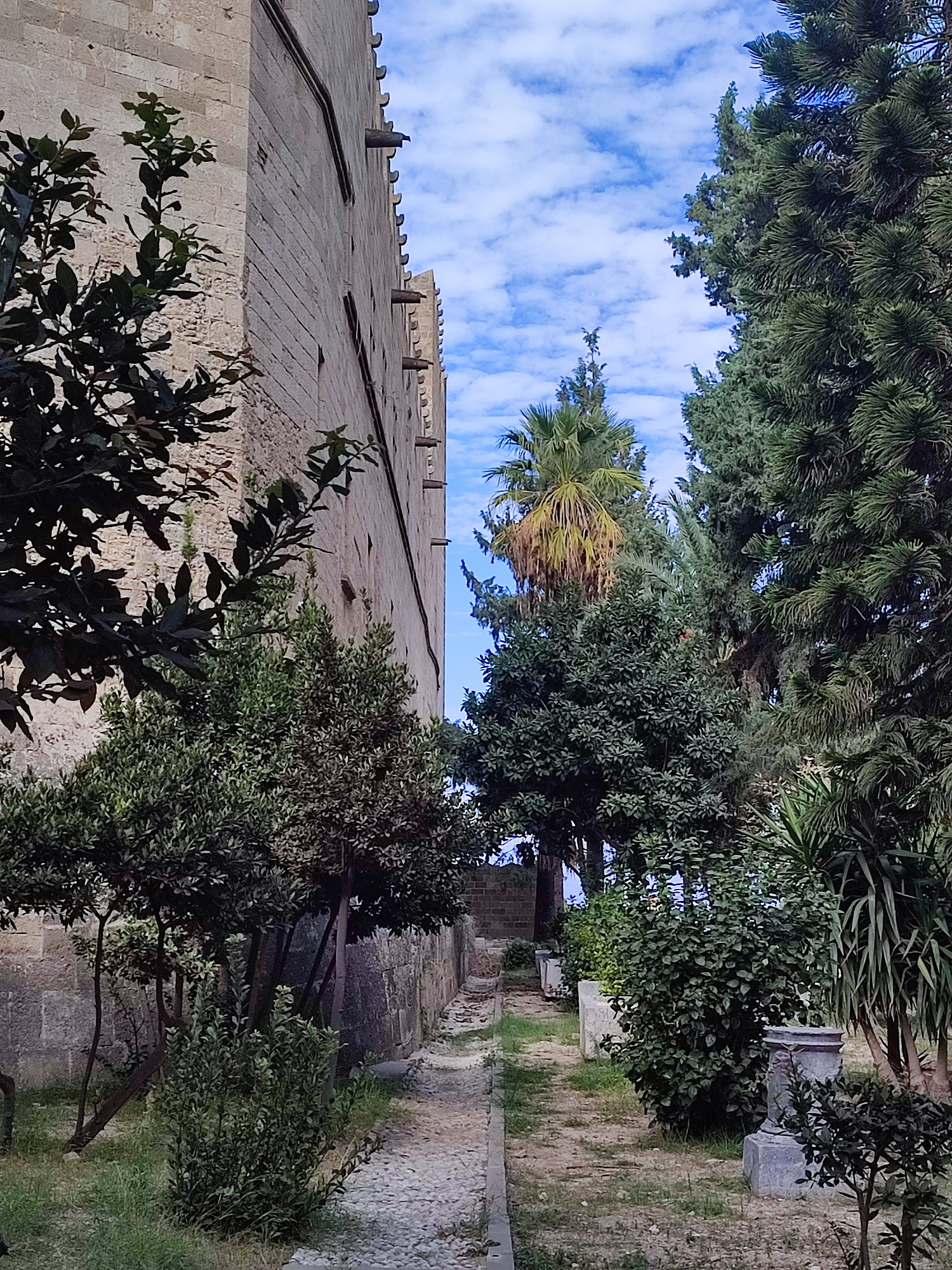 Kto odwiedzał Rodos w poprzednich latach i zwiedzał Pałac Wielkich Mistrzów, ten wie, że wstępu do pałacowych ogrodów bronił szlaban. Zmieniło się to w czerwcu 2024 roku. Wówczas to ogrody przy Pałacu Wielkich Mistrzów zostały otwarte dla szerokiej publiczności. Ogród jest niewielki, ale uroczy i spokojny. Są miejsca by odpocząć, jest nieco cienia i widok na morze.