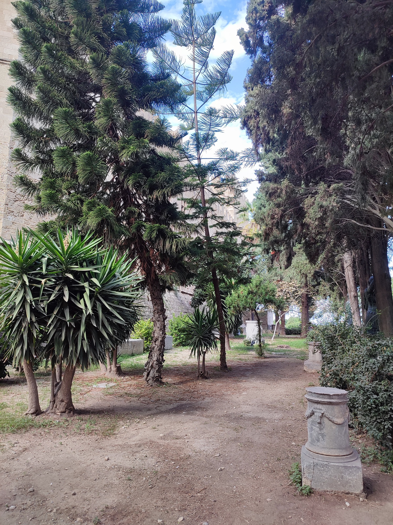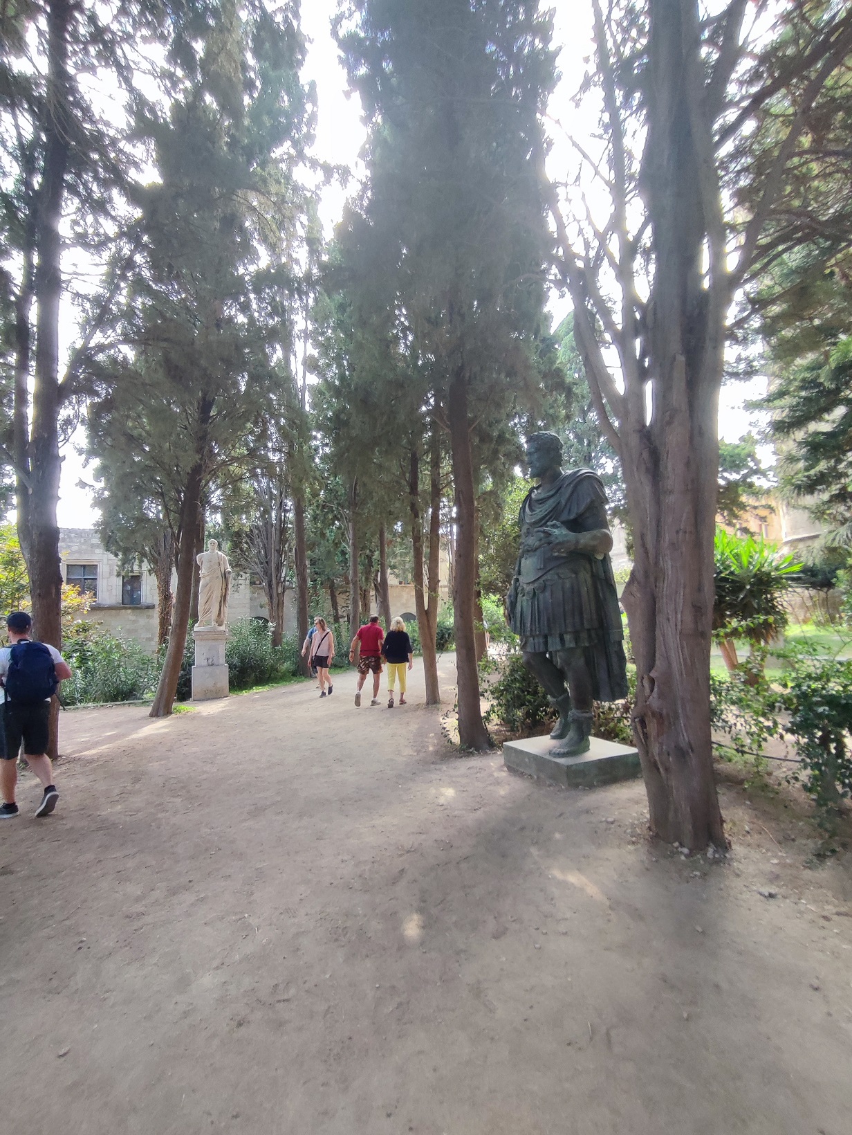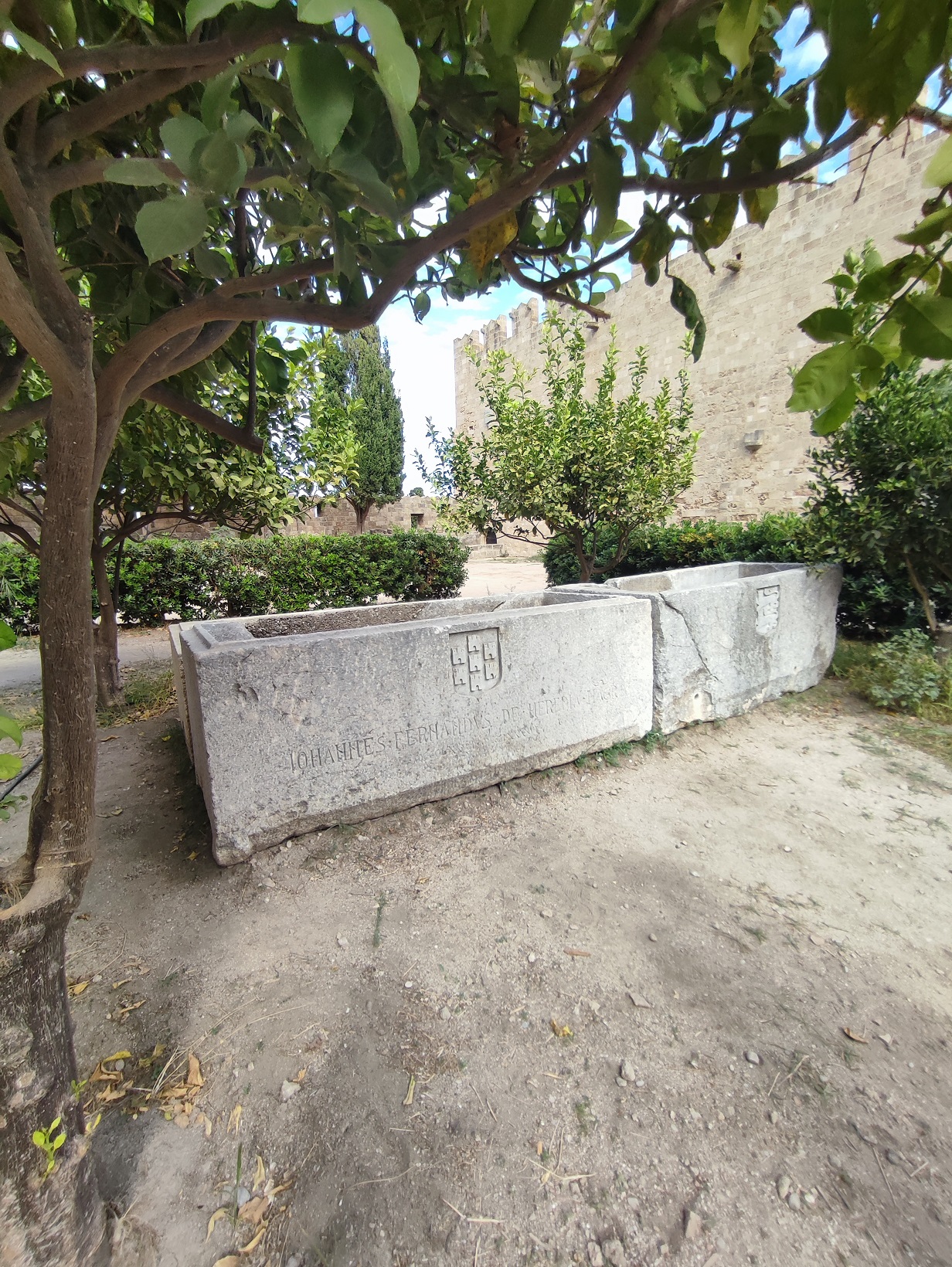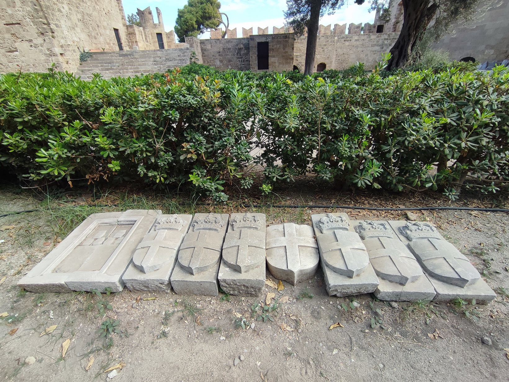 W ogrodzie wśród śródziemnomorskiej roślinności stoi kilka posągów rycerskich, niestety niepodpisanych. Oprócz tego można podziwiać sarkofagi wielkich mistrzów oraz różnorodne elementy architektoniczne, najczęściej ze zdobieniami joannitów.