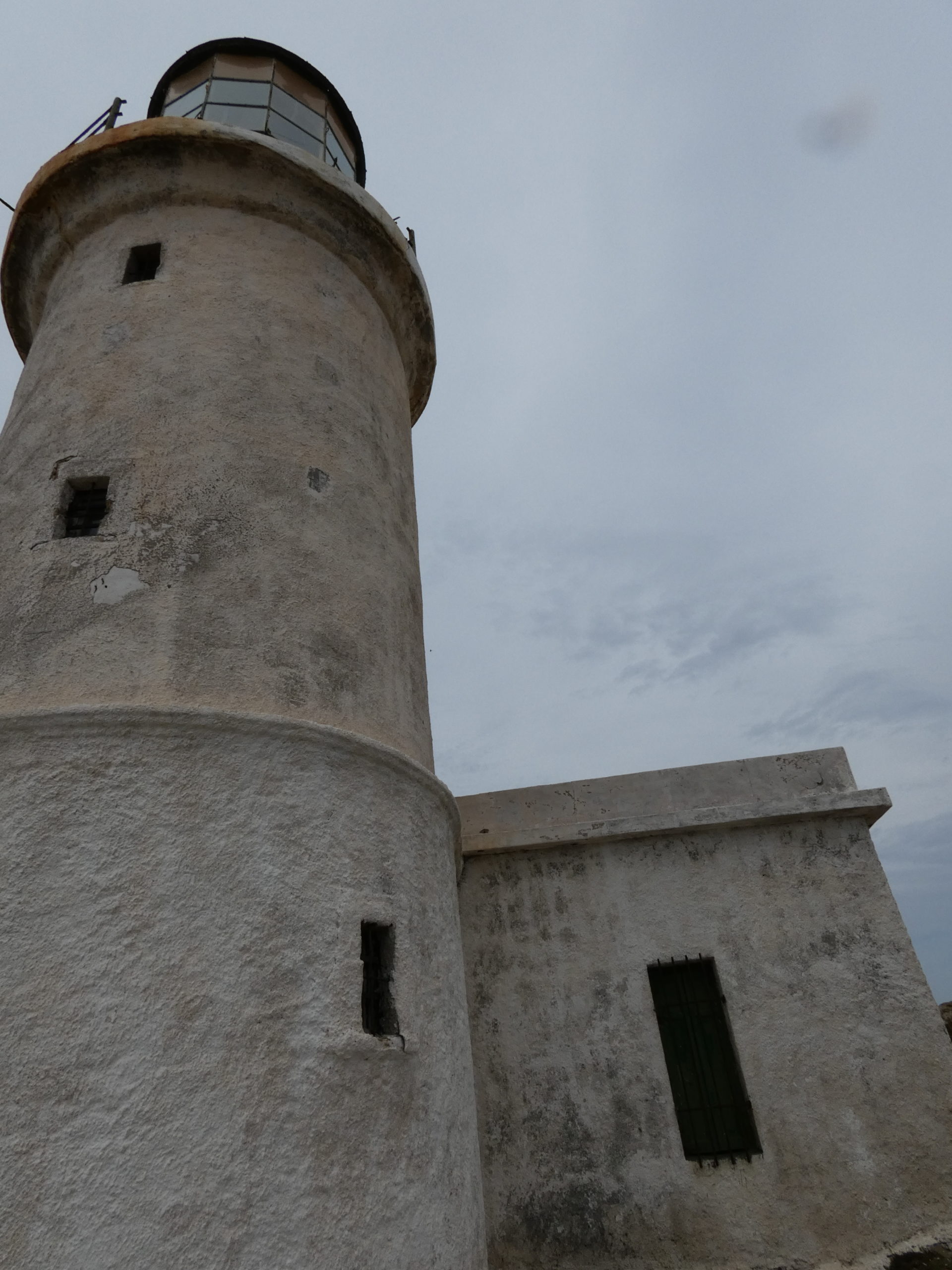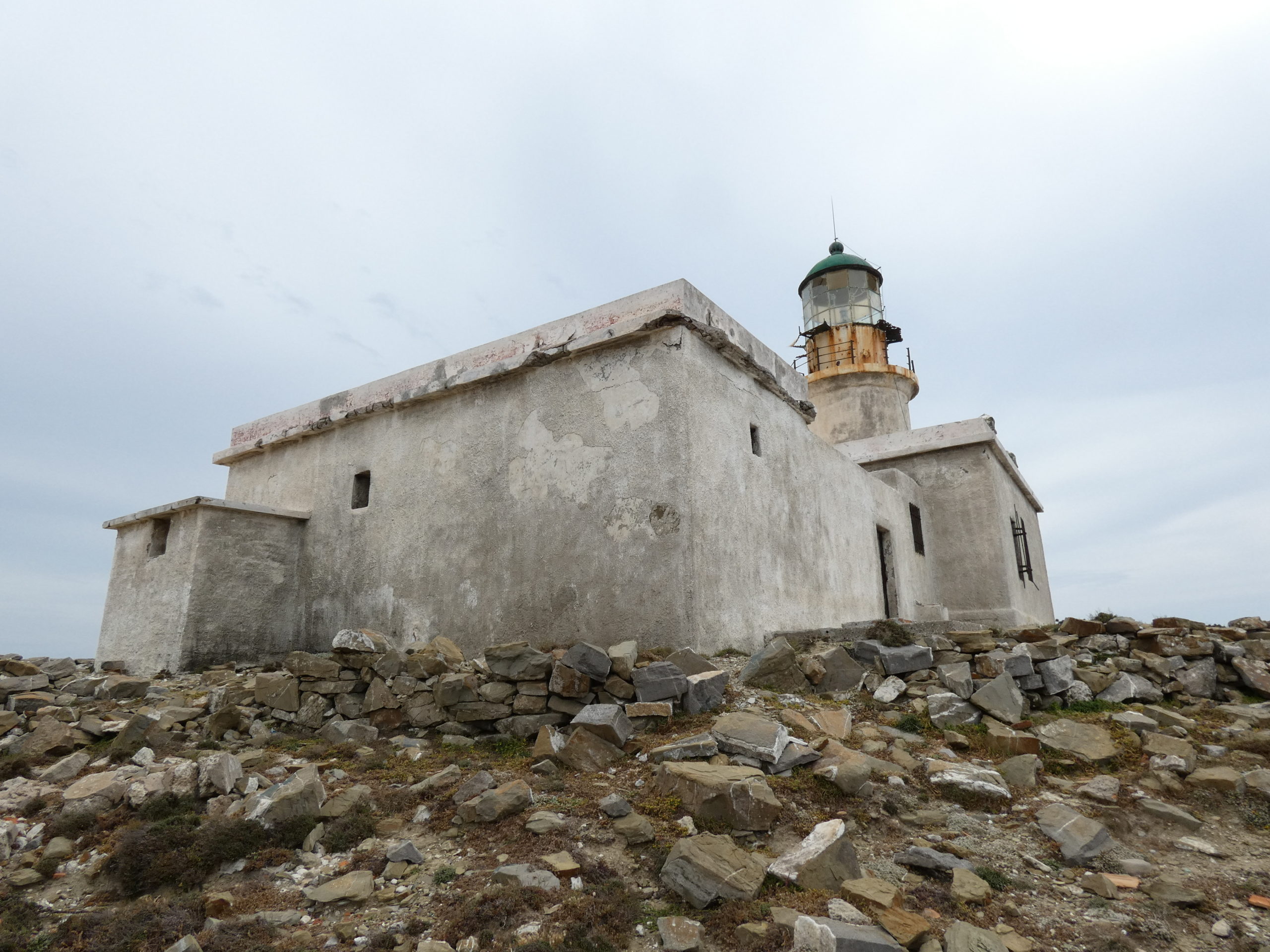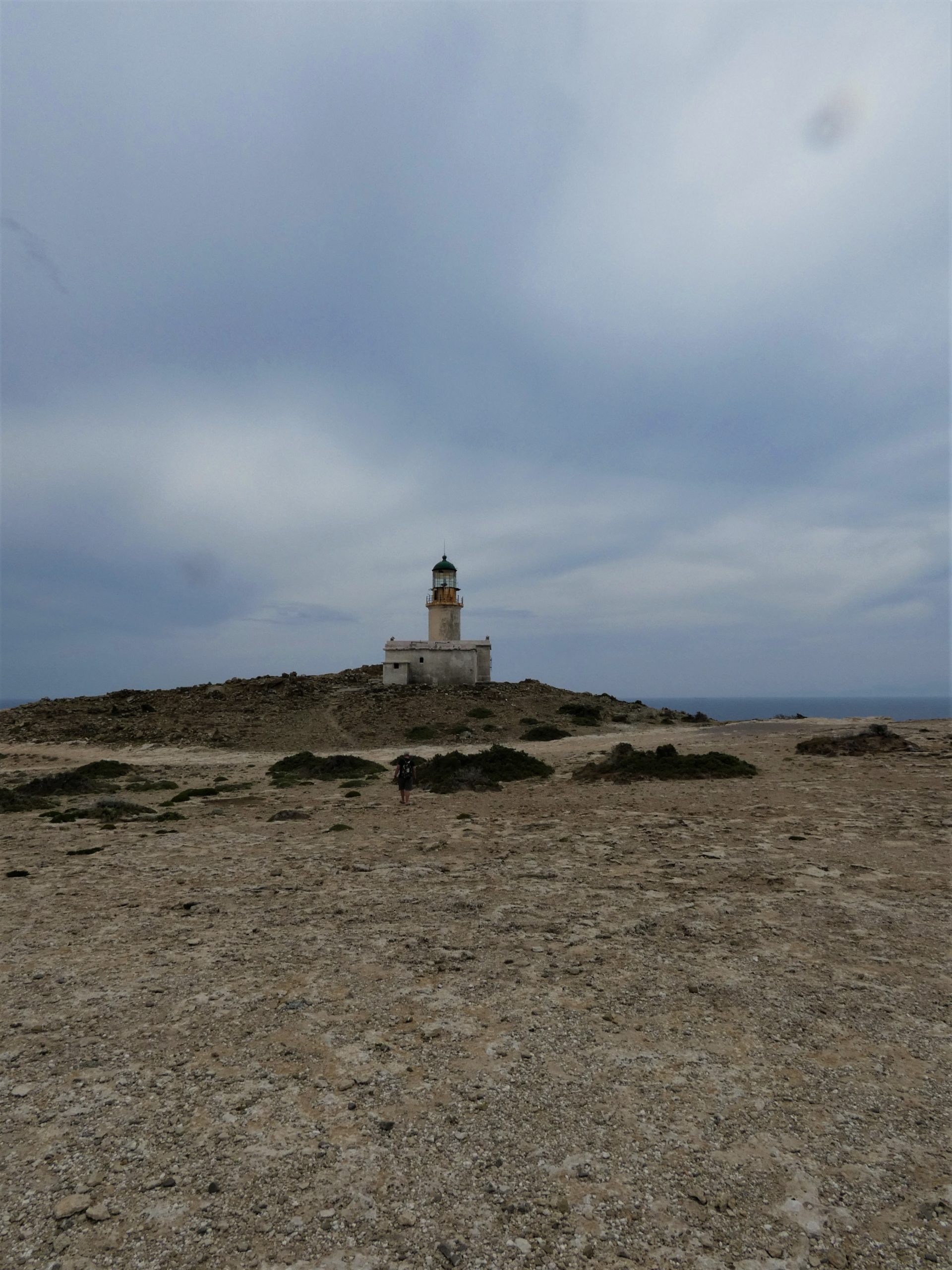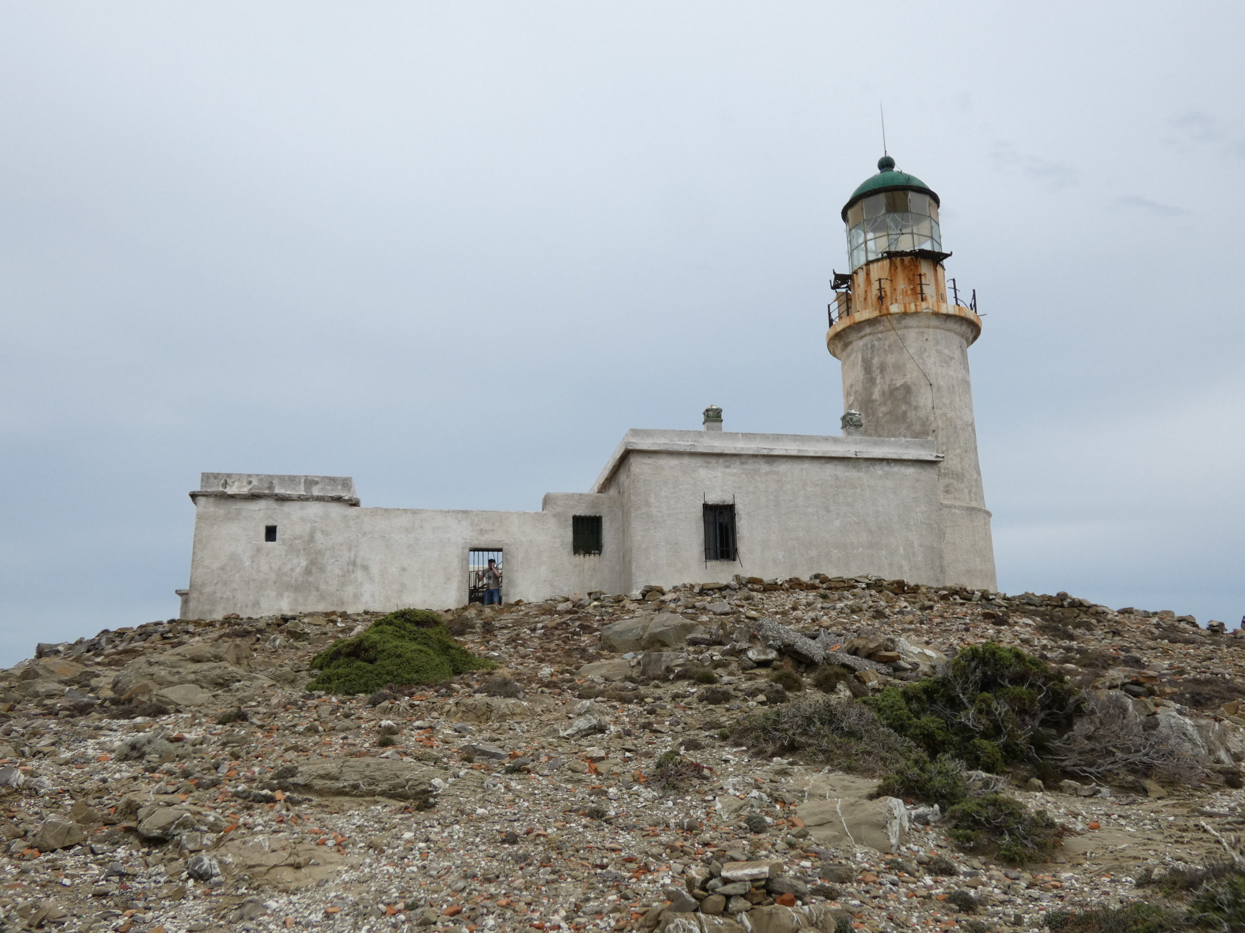My skierowaliśmy się w prawa stronę, która była bardziej skalista i pokryta drobnym żwirem. Następnie podążyliśmy na południe wzdłuż wybrzeża, równolegle do pierwszej drogi, która przecinała wysepkę, prowadząc przez jej środek. Po wdrapaniu się na kolejne wzgórze zobaczyliśmy kolejne wzniesienie. Wydawało nam się, że gdy wejdziemy na jego szczyt, to zobaczymy latarnię. Nic bardziej mylnego. Gdy weszliśmy na górę, to latarni nie zobaczyliśmy. Udało się to dopiero za trzecim wzgórzem. Końcowy odcinek był bardziej stromy, pokryty żwirem, kamieniami, kawałkami marmurowych płyt i rosnącymi między nimi roślinami. Bardziej odpowiedni dla kozic niż dla ludzi. Dlatego, jeśli macie wybór, wybierzcie drogę przez środek wyspy, która jest może nieco dłuższa, ale za to łatwiejsza. Na wyspie znajduje się też kilka ładnych plaż, na których można się zatrzymać.