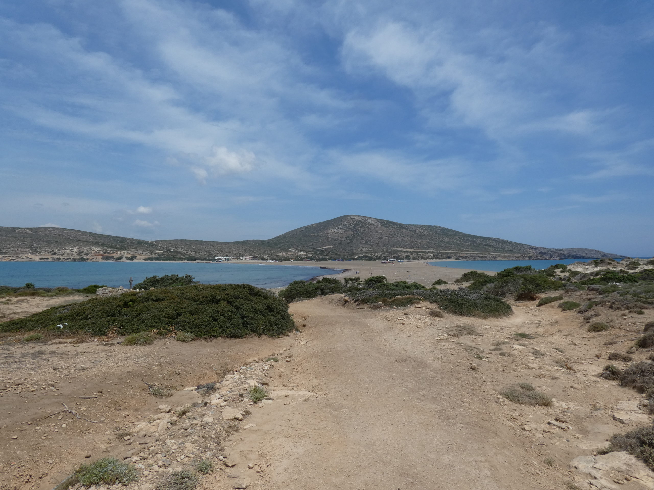 Po przejściu pasa piasku oddzielającego plażę od półwyspu, wchodzimy na ubitą ziemną drogę, która pnie się na szczyt wzgórza. Dodam, że pierwszego wzgórza. Z jego szczytu widać dwie drogi. Jedna droga prowadziła lekko w lewo i schodziła w dół, aby później znów piąć się w górę. Druga skręcała w prawo i była prawie płaska.