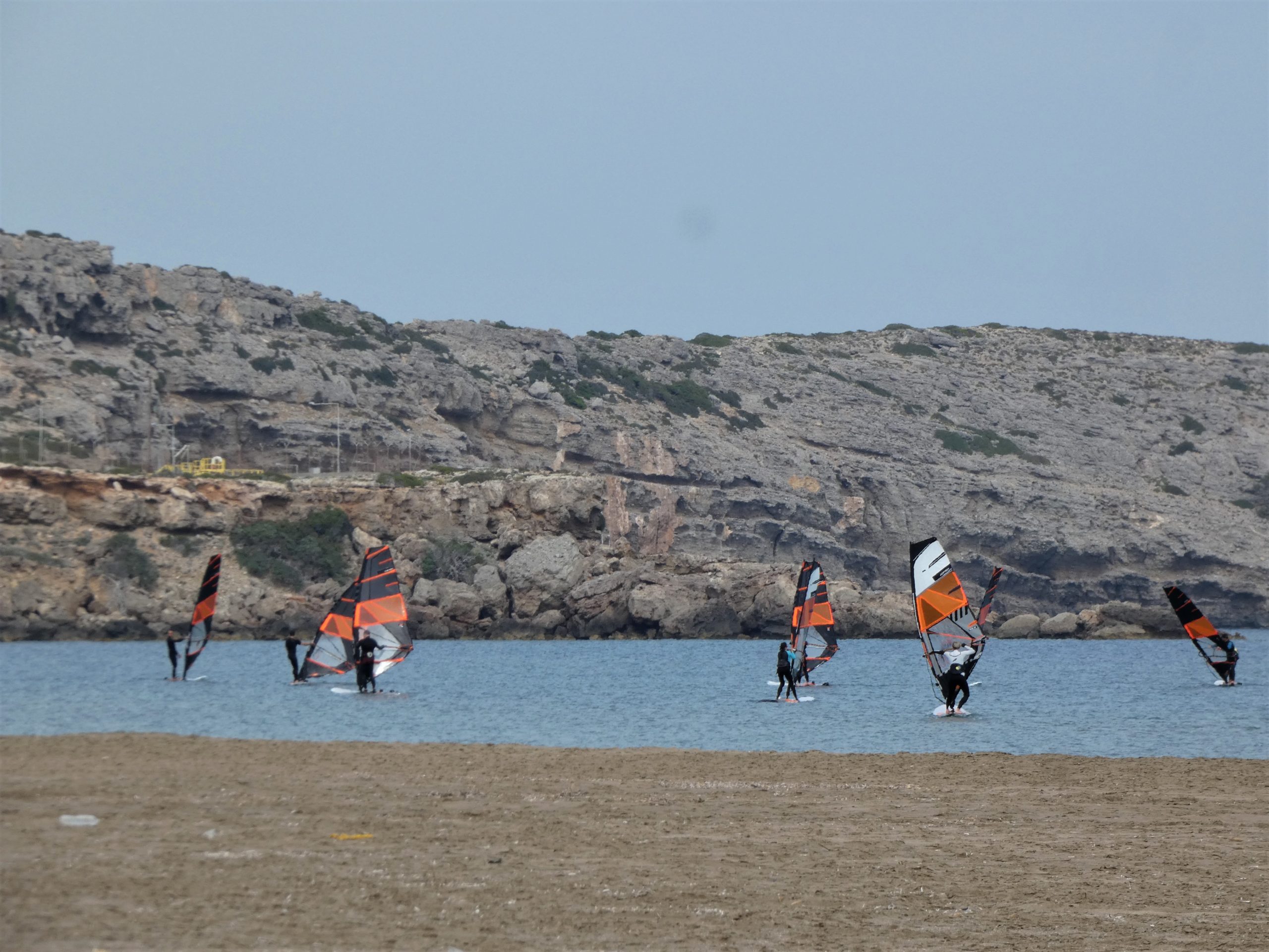 Na plaży znajdziemy tawerny i wypożyczalnie sprzętu wodnego, gdyż panują tu doskonałe warunki do uprawiania windsurfingu i kitesurfingu. Zachodnią część plaży, gdzie wieją silne wiatry, okupują ci, którzy mają spore doświadczenie. Po stronie wschodniej wieje dużo mniej, co sprzyja nauce pływania na desce. Znajdują się szkoły windsurfingu i kitesurfingu, jednak szkolenie nie jest tanie. Godzina indywidualnego szkolenia to wydatek 40 euro.