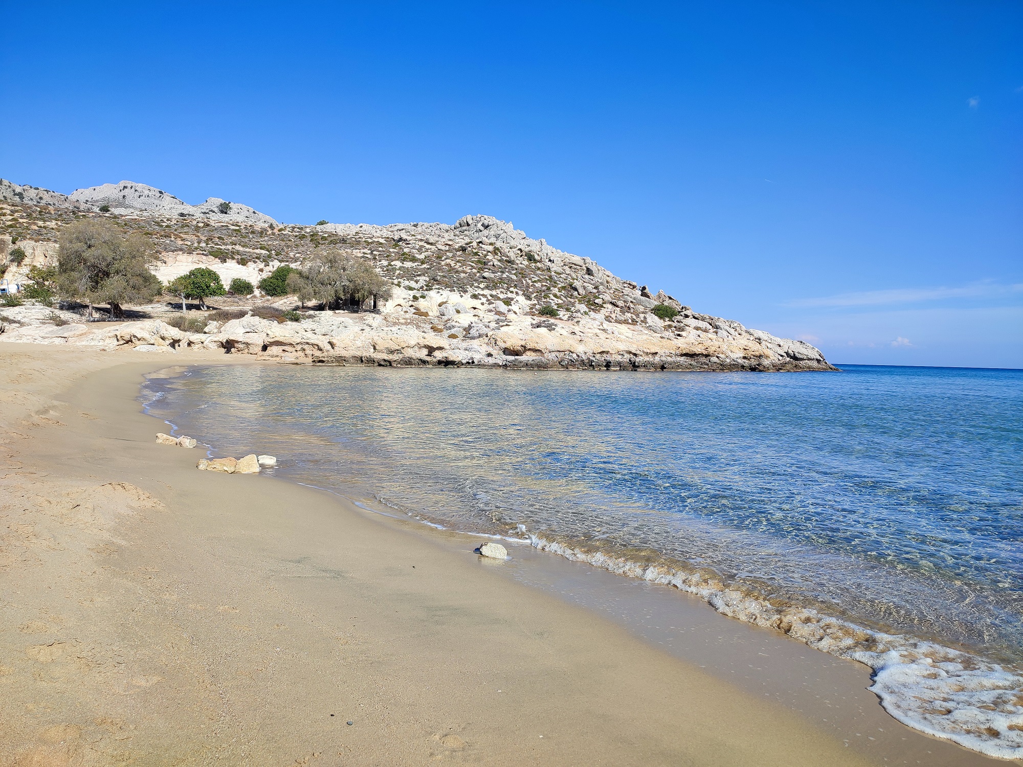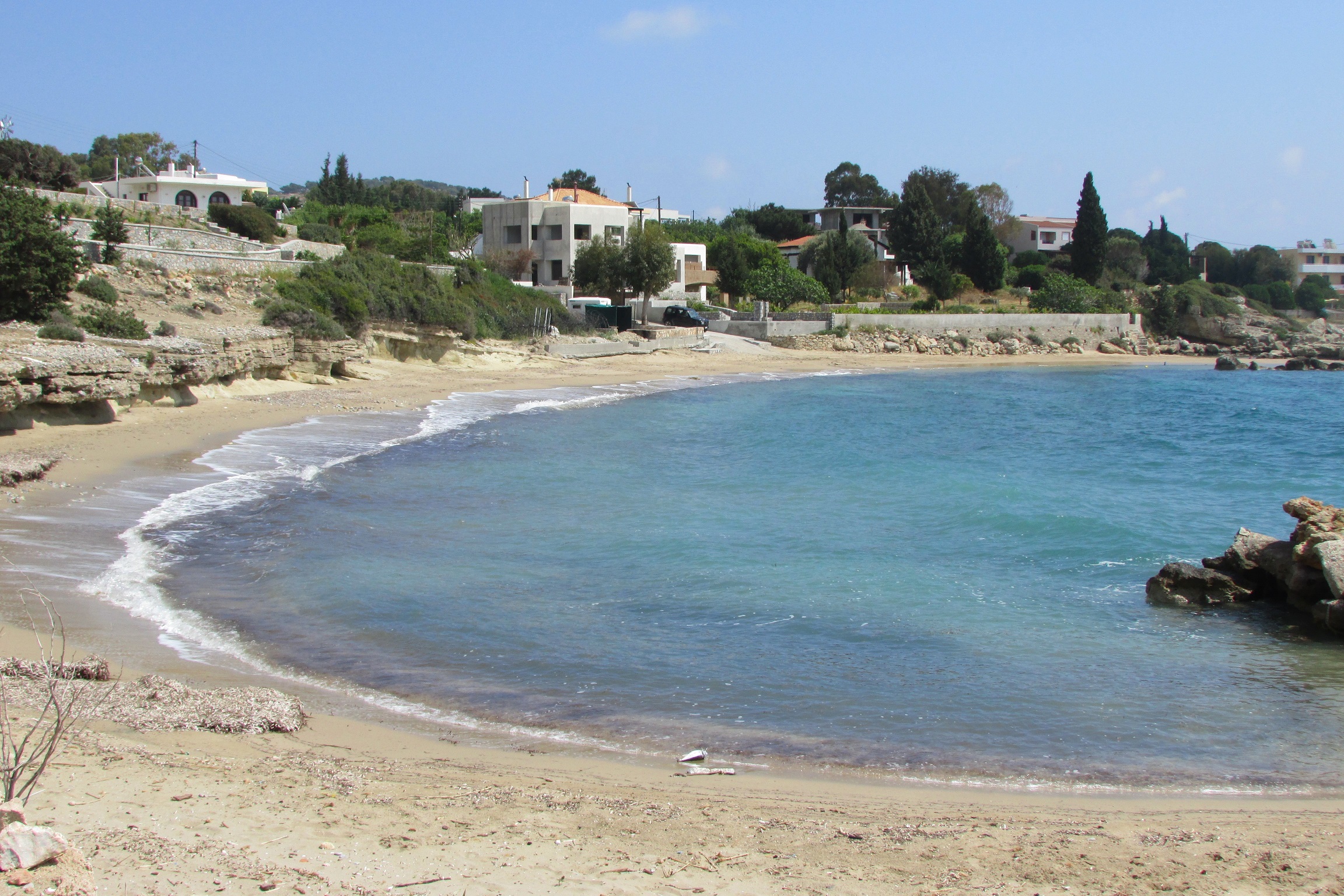 Morze, mimo że nie jest ciepłe, to i tak cieplejsze, niż Bałtyk latem. Osoby mniej wrażliwe mogą korzystać z kąpieli morskich, zwłaszcza w osłoniętych zatoczkach koło Lindos, czy przy plaży Agathi. Zwykle od połowy kwietnia temperatura wody wynosi około 20 stopni Celsjusza, a w maju może osiągać 21–22 stopnie Celsjusza, co pozwala na pierwsze, orzeźwiające kąpiele w zatoce.