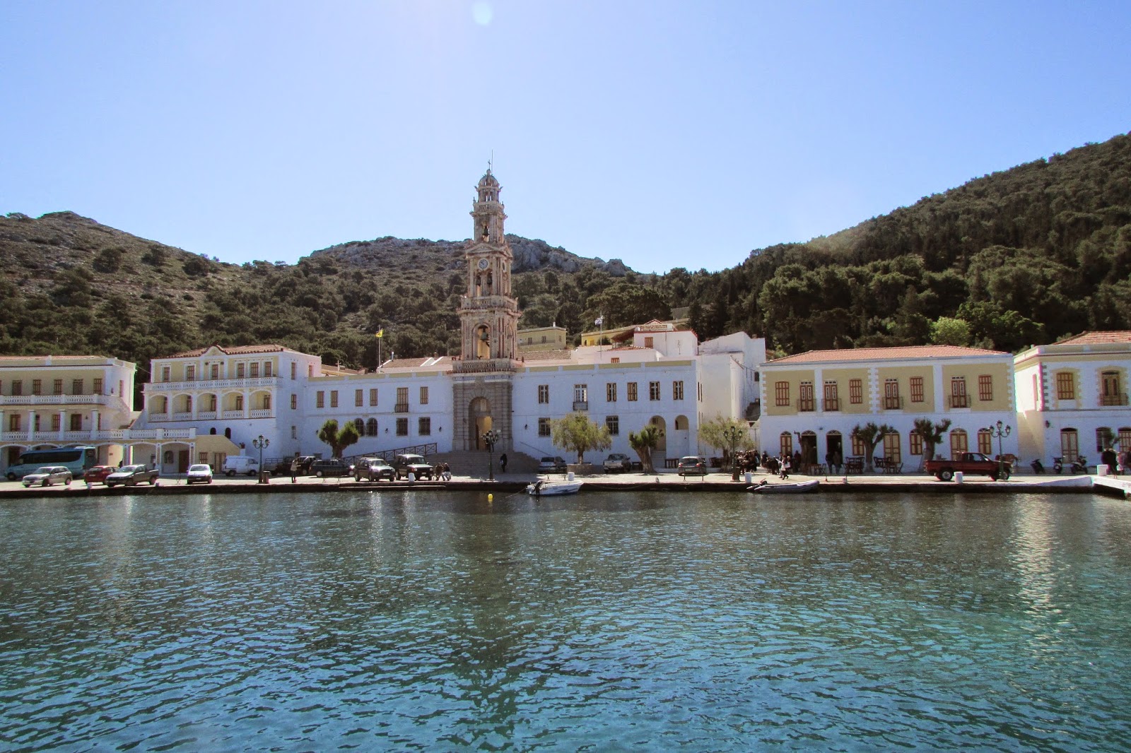 Wracając do rejsu wycieczkowego to zwykle kieruje się on najpierw na południowo wschodni cypel wyspy, do klasztoru Panormitis. O klasztorze nie będę pisała ponownie, gdyż pisałam ostatnio, a chętnych odsyłam do lektury tutaj.