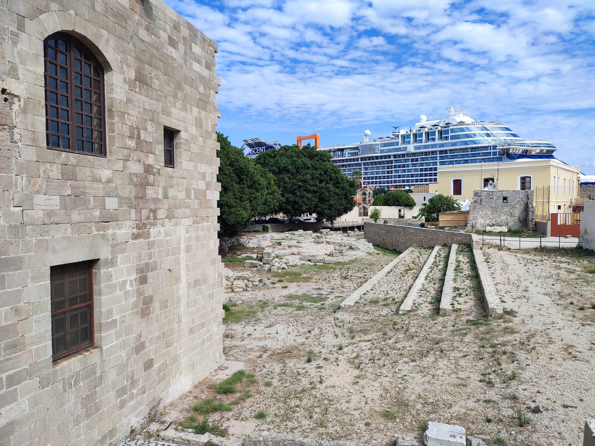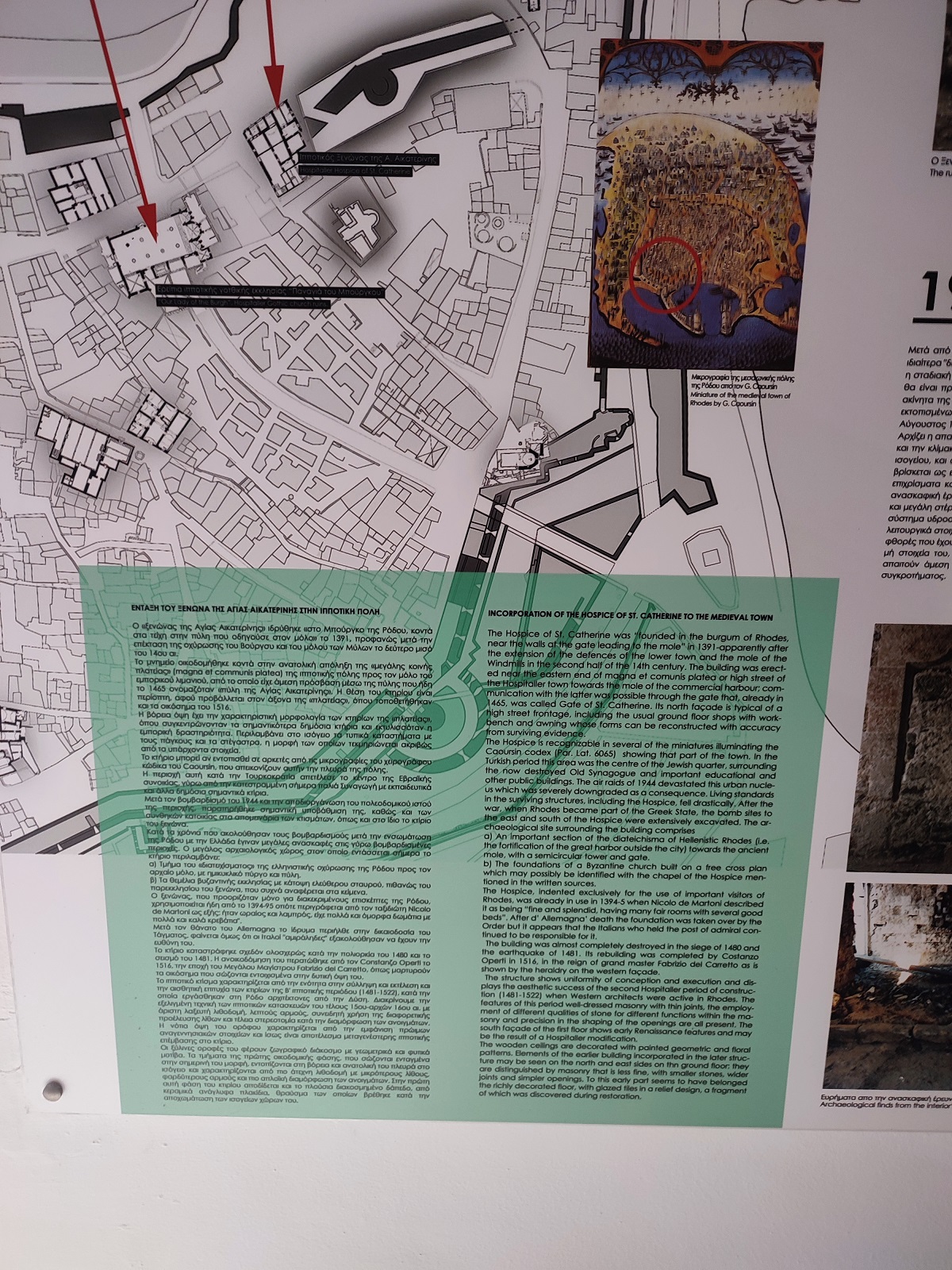 Na malowniczym Starym Mieście Rodos, niedaleko Placu Męczenników Żydowskich (gr. Πλατεία Εβραίων Μαρτύρων), wznosi się imponujący Zajazd św. Katarzyny (gr. Ξενώνας Αγίας Αικατερίνης). Budynek wyróżnia się strategicznym usytuowaniem. Jego bryła, wysunięta na oś głównej ulicy, jest widoczna ze wszystkich stron już z daleka.