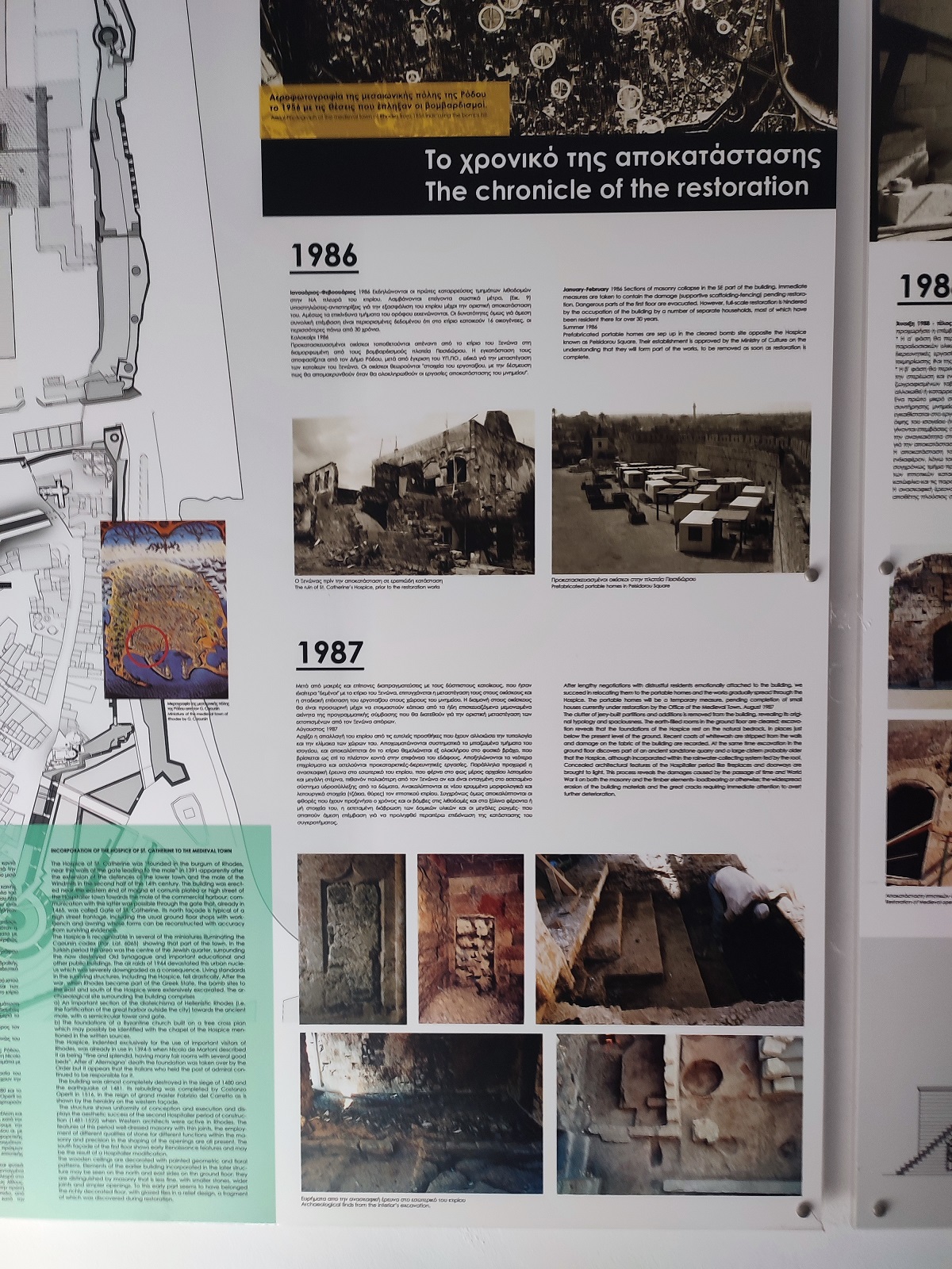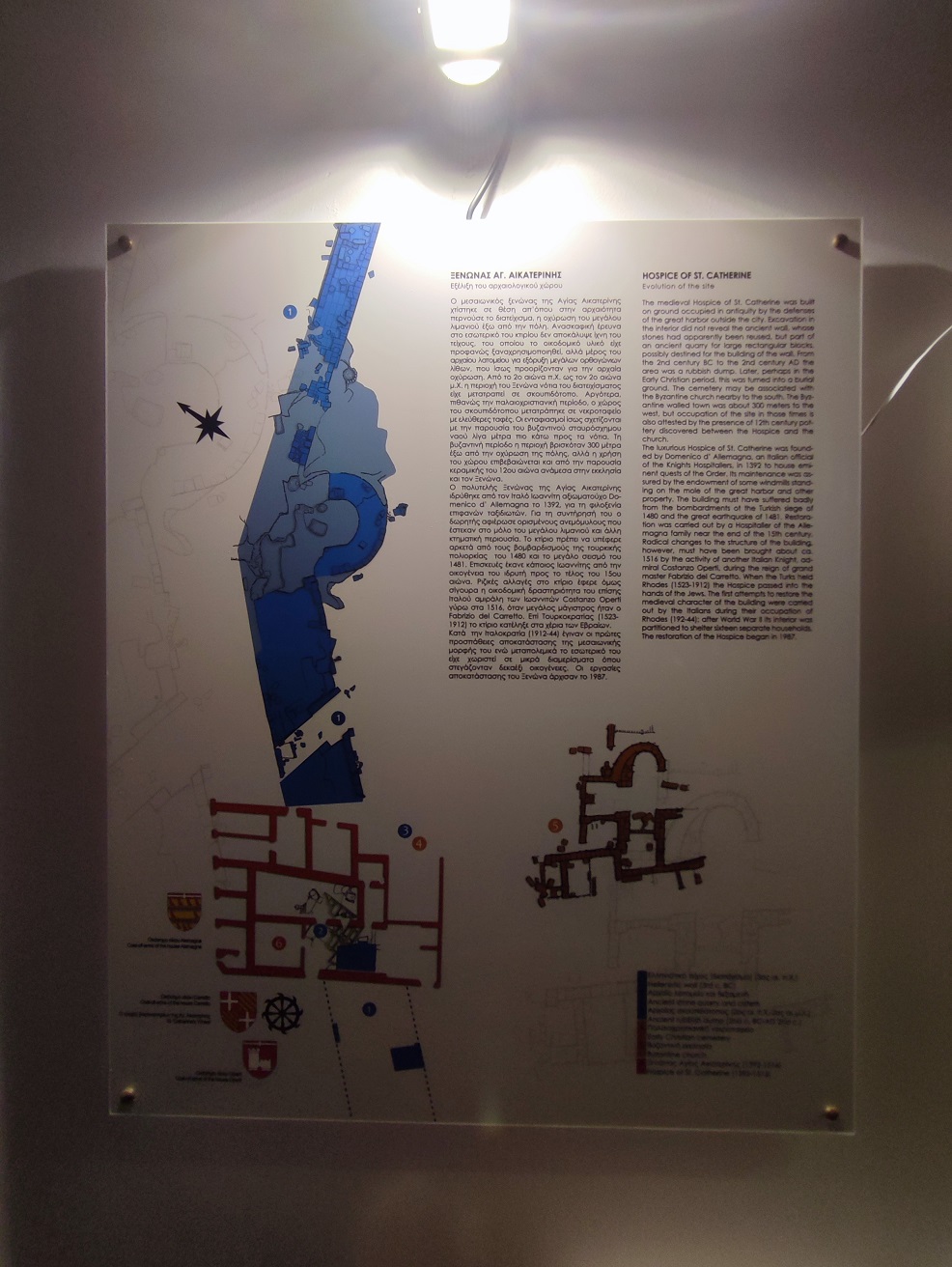 Budynek doznał poważnych zniszczeń podczas oblężenia w 1480 r. i trzęsienia ziemi w 1481 r. Jego odbudowę ukończył Costanzo Operti w 1516 r. za czasów wielkiego mistrza Fabrizio del Carretto, którego herb przetrwał do dziś na zachodniej fasadzie. Podczas bombardowań alianckich w 1944 r. wschodnia część hostelu uległa zawaleniu, podobnie jak wiele innych budynków w sercu dzielnicy żydowskiej. W latach po zniszczeniach wojennych ocalała część budynku stała w opłakanym stanie w opuszczonej dzielnicy. Zrujnowany budynek zamieszkiwali biedni osadnicy i imigranci w trudnych warunkach aż do 1986 roku.