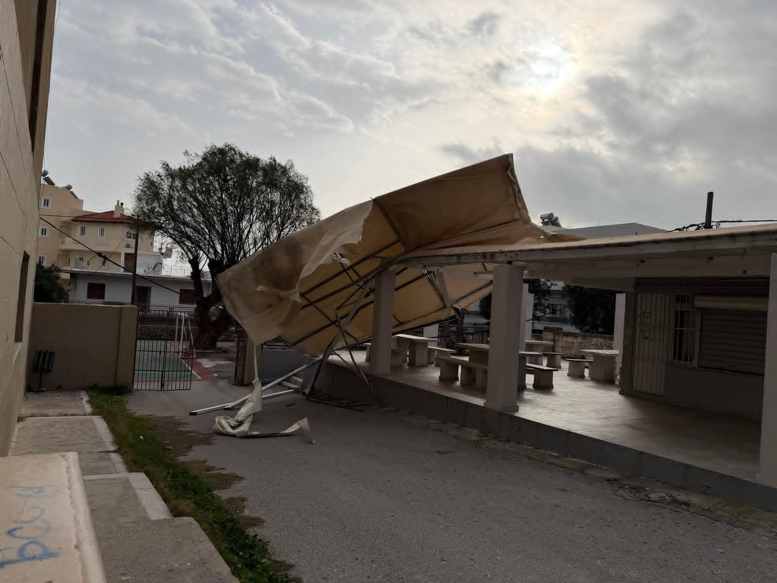 Szkoły i inne obiekty pozamykano, a zła pogoda spowodowała poważne problemy w czasie przemieszczania się przez wyspę. Południowo-wschodni wiatr osiągał miejscami 10-11 stopni w skali Beauforta, a straż pożarna otrzymała dziesiątki zgłoszeń, głównie z powodu powalonych drzew i gałęzi. W porcie Akantia prom Blue Star kołysał się jak zabawkowy statek, ciężarówka zaparkowana przy porcie została przewrócona przez wiatr, a fale zalały portowy parking.